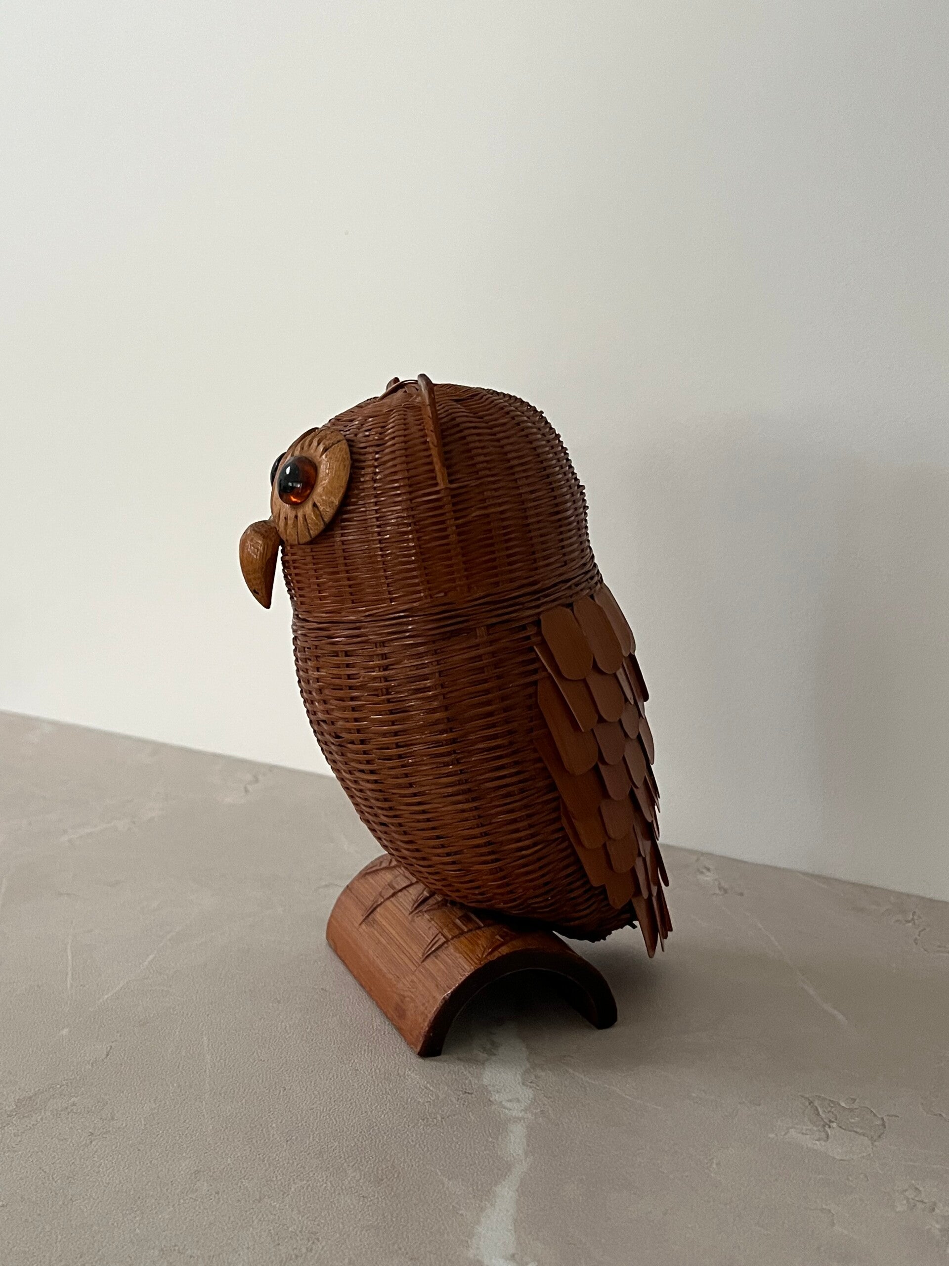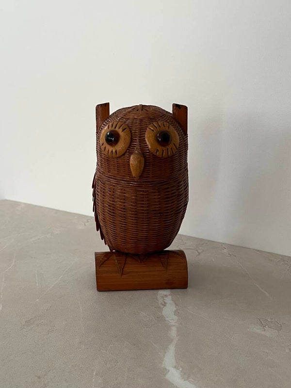 Boîte vintage en forme de chouette ou hibou en osier.