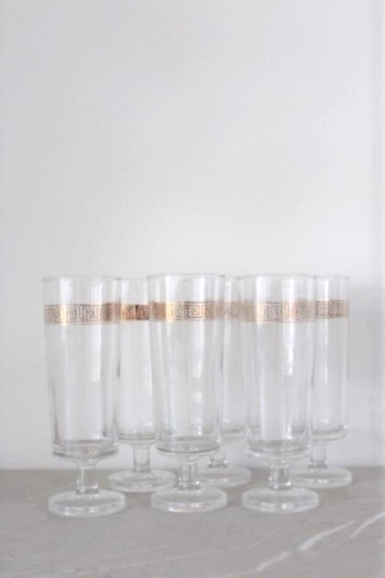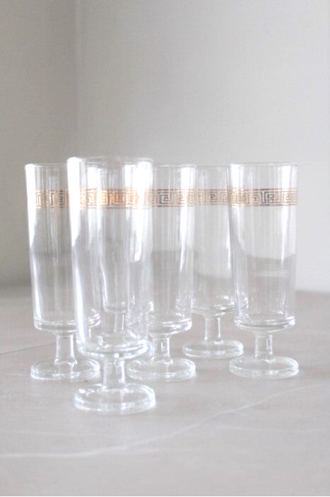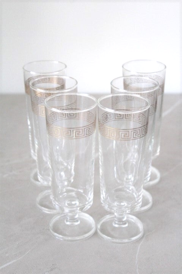 6 flûtes rehaussées d'une frise dorée de style grec.