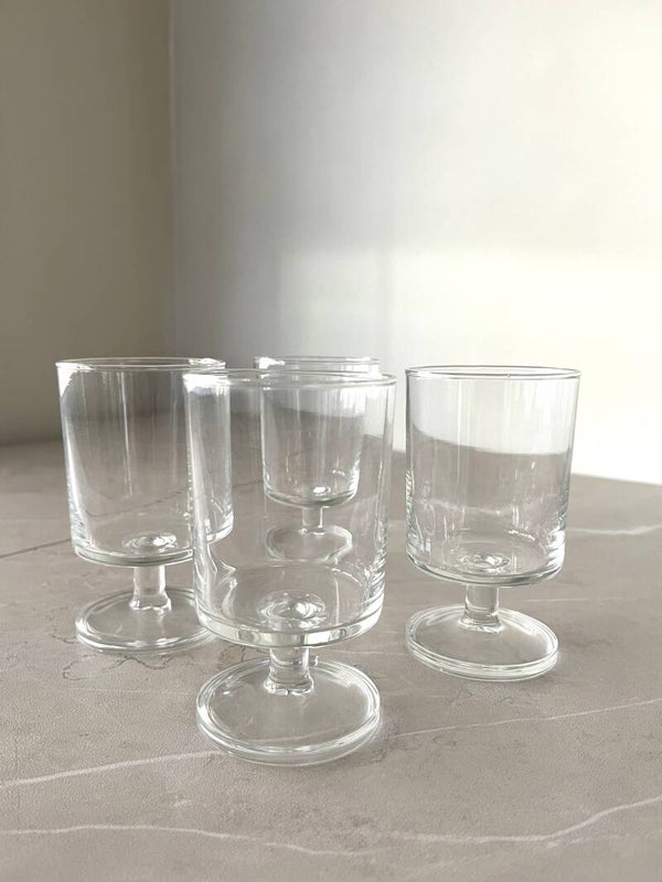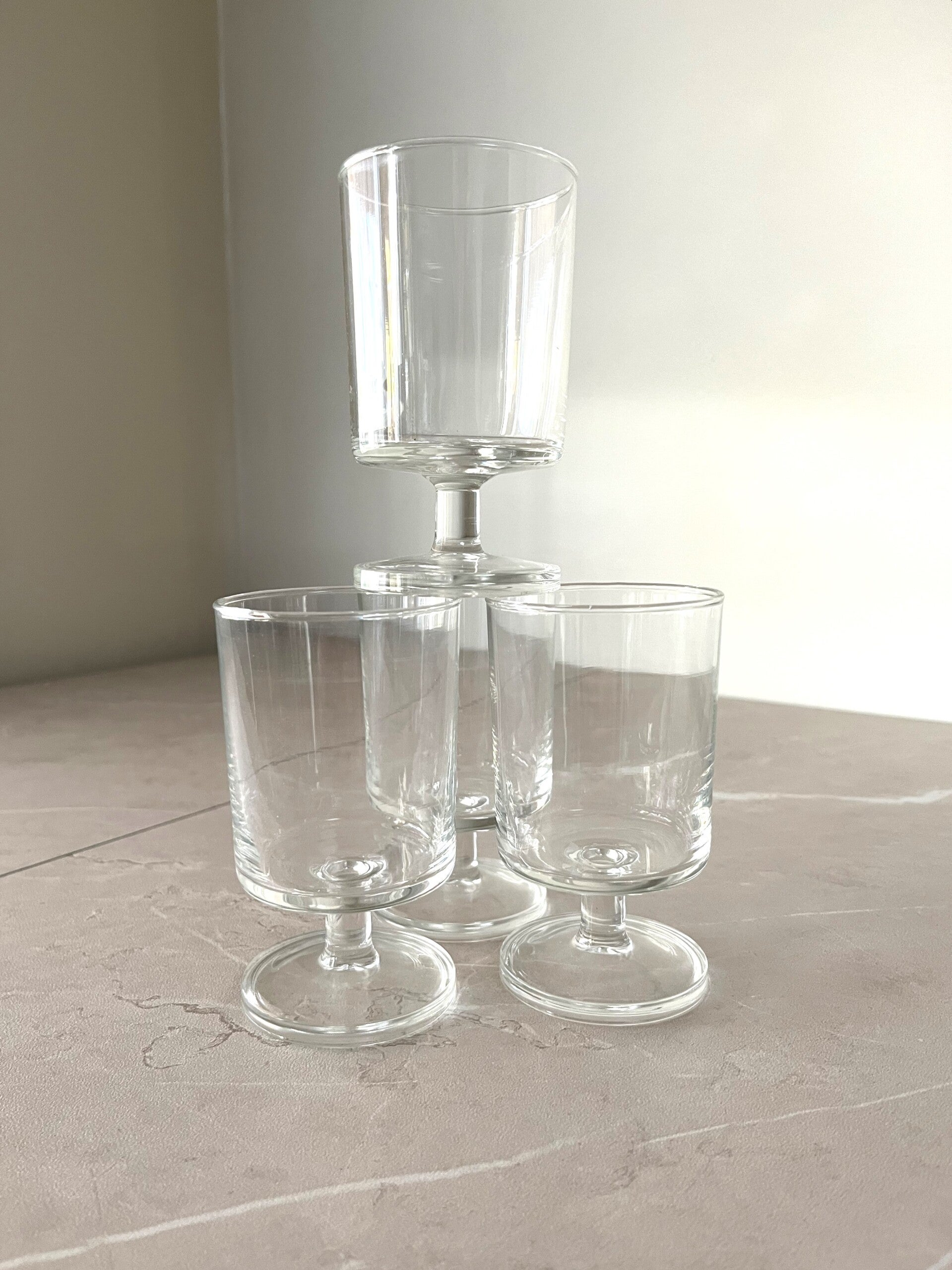 4 grands verres à eau à vin des années 70 à la forme intemporelle et design.