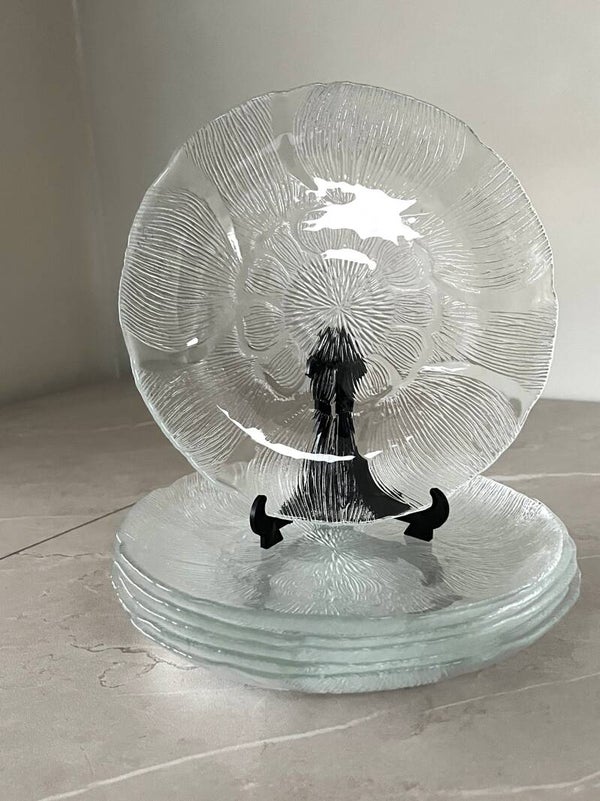 6 petites assiettes en verre Arcoroc en parfait état. Pour le dessert ou la salade, elles s'adaptent !