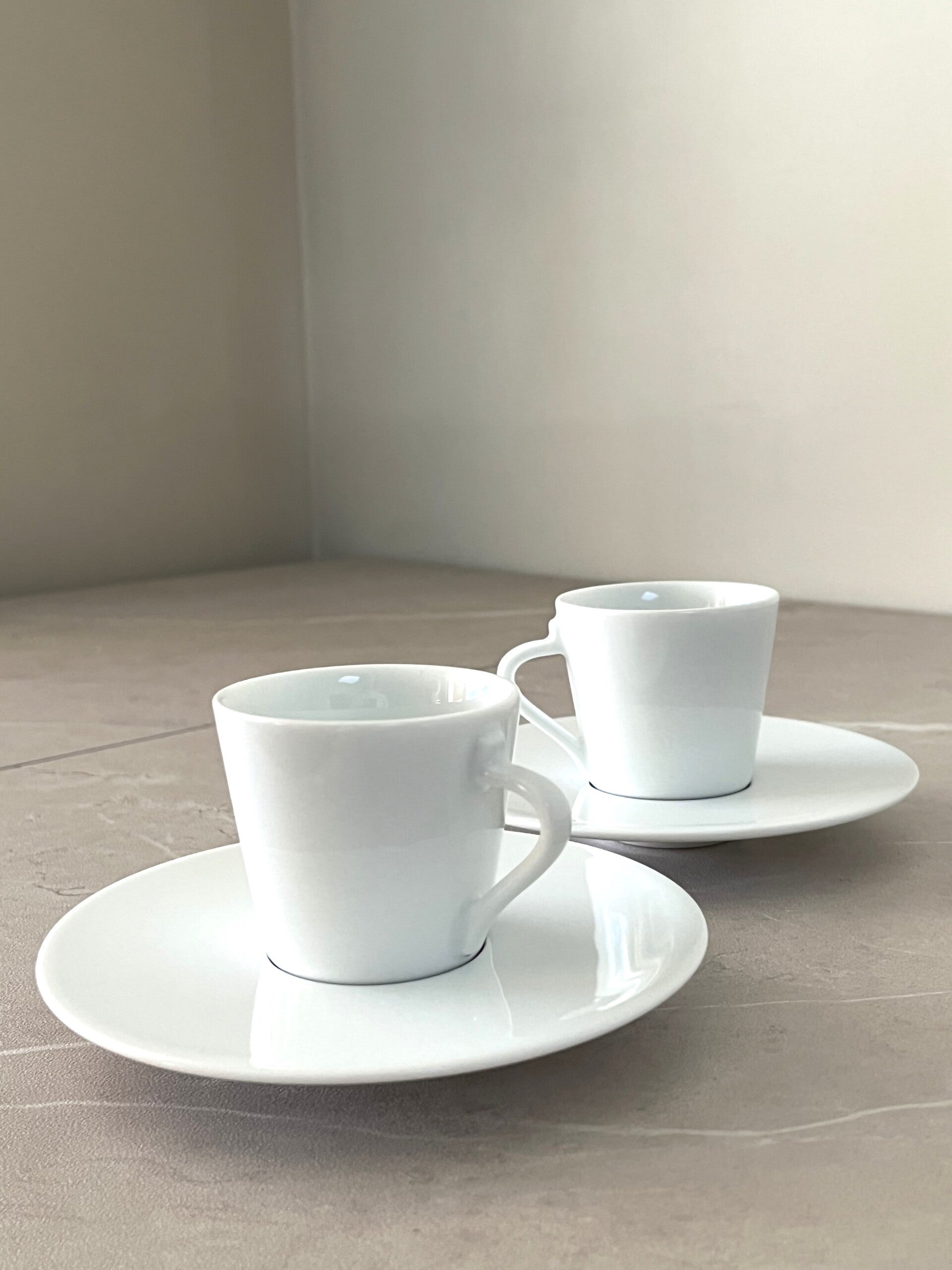 Son design était epuré. Ces tasses représentent une capsule de café.