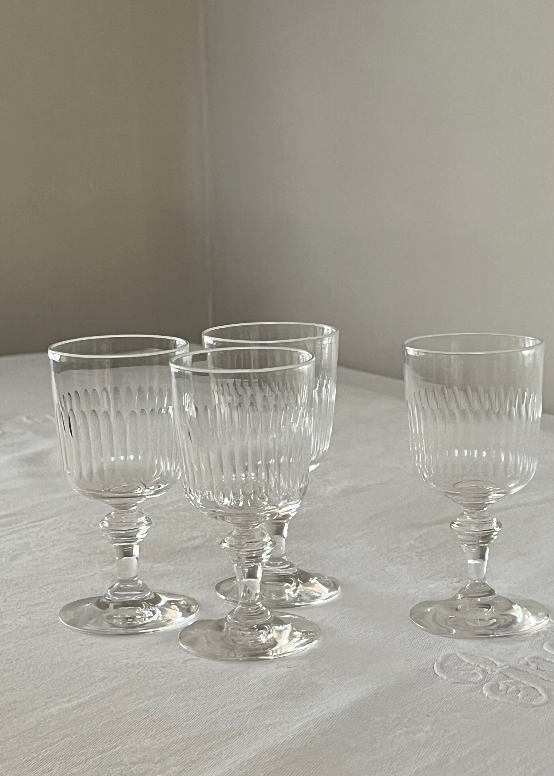 4 anciens verres en cristal en parfait état pour vos apéritifs.
