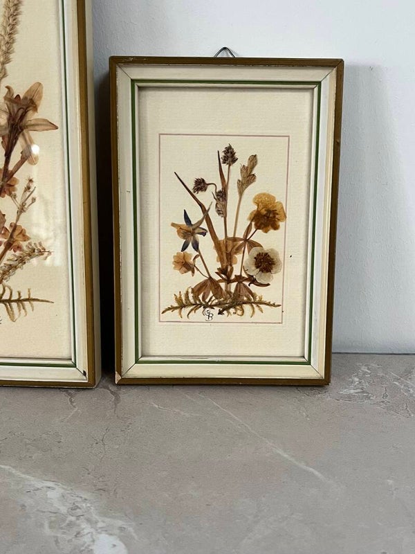 3 tableaux avec de véritables fleurs séchées en tryptique.