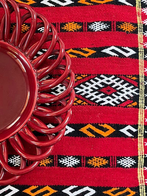Tapis ou carpette berbère du Maroc de couleur bordeaux.
