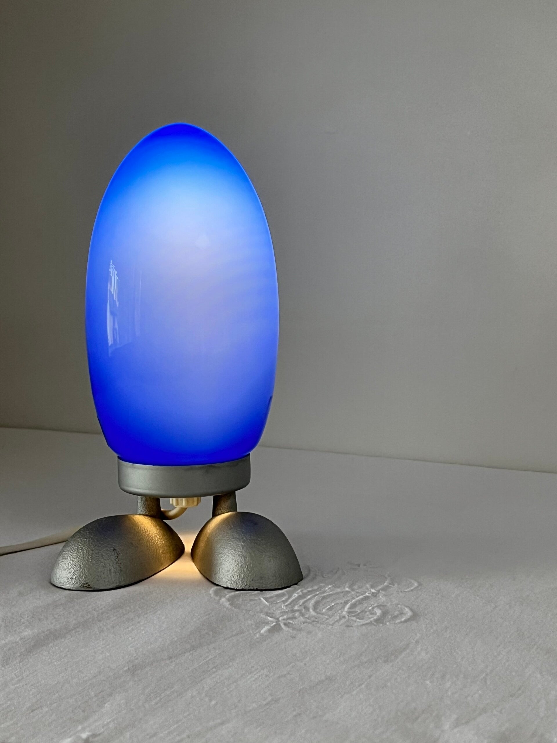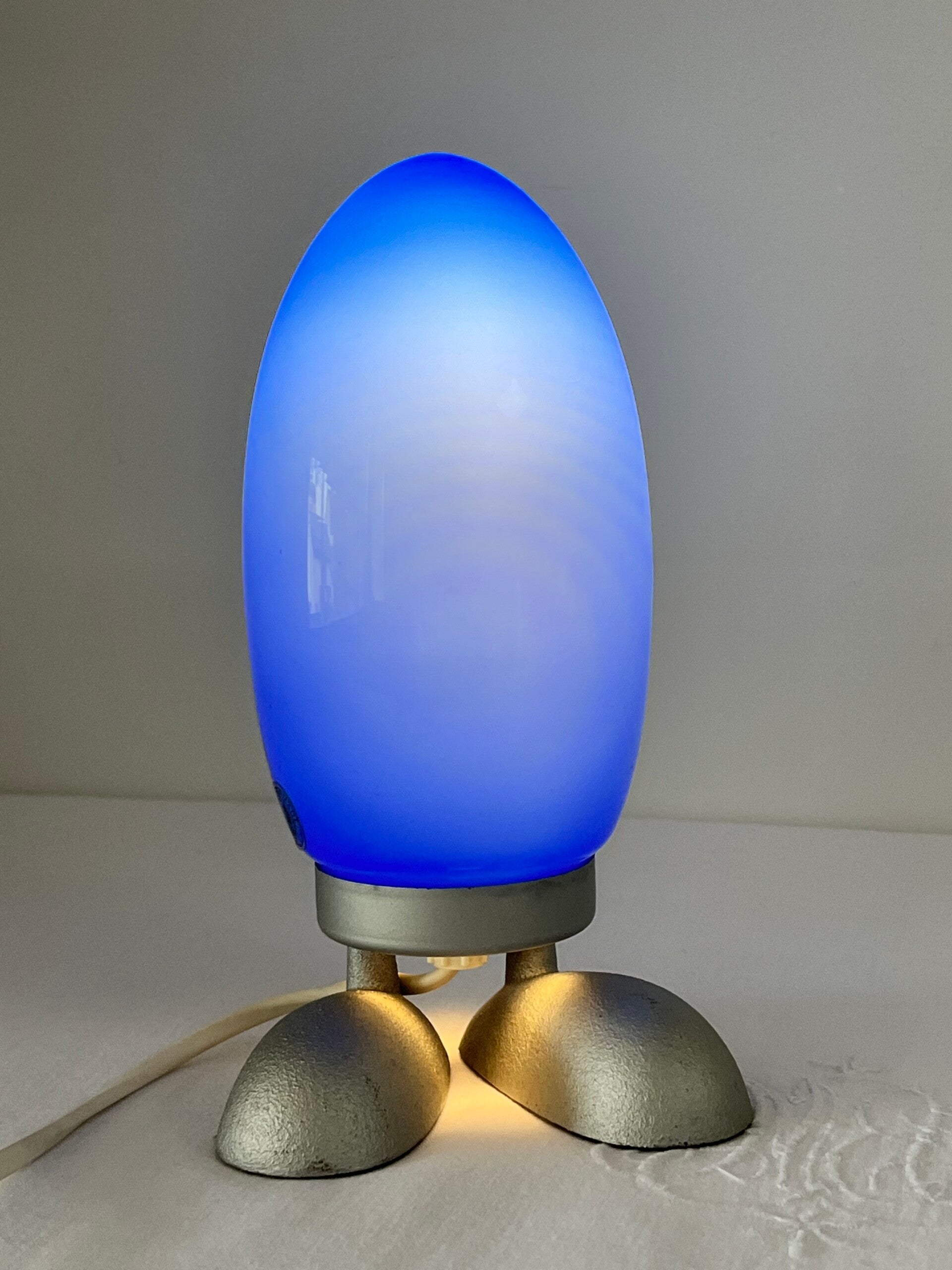 Lampe bleue Fjorton conçue par Tatsuo Konno pour Ikéa dans les années 90.