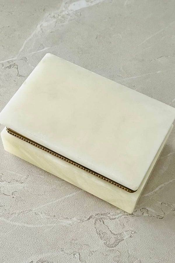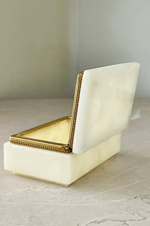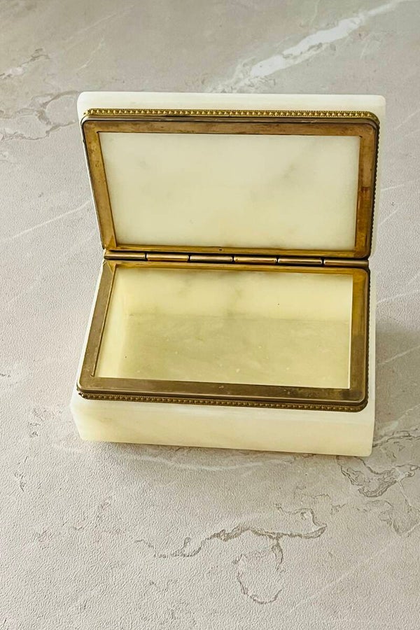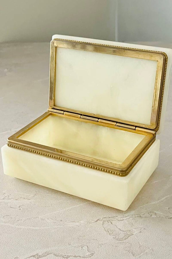 Boîte italienne en albâtre avec cerclage en laiton, vintage des années 70.