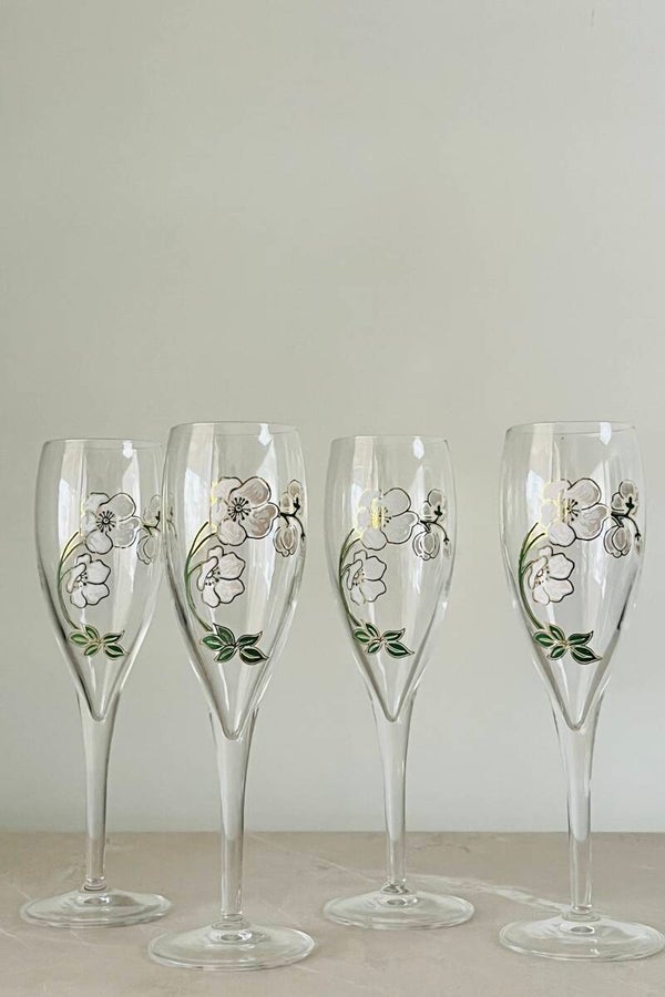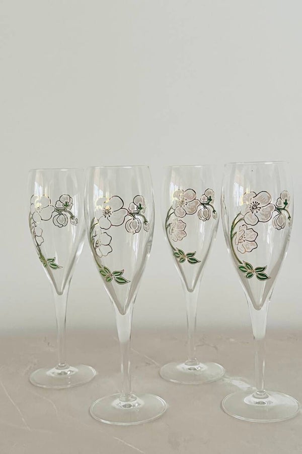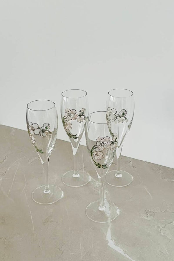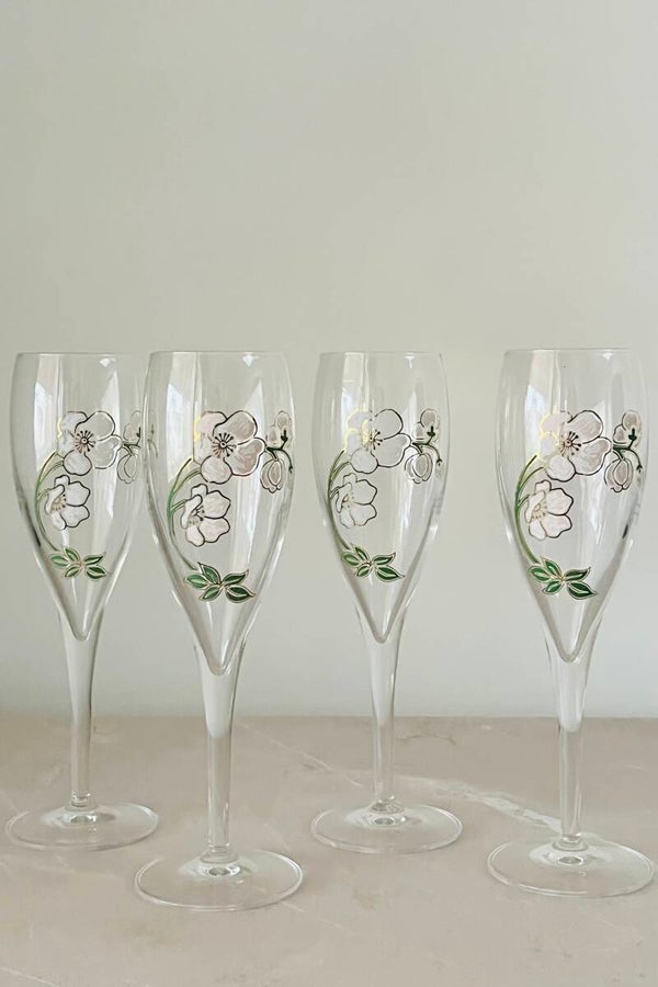 4 magnifiques flûtes Perrier-Jouët Belle Epoque en parfait état.