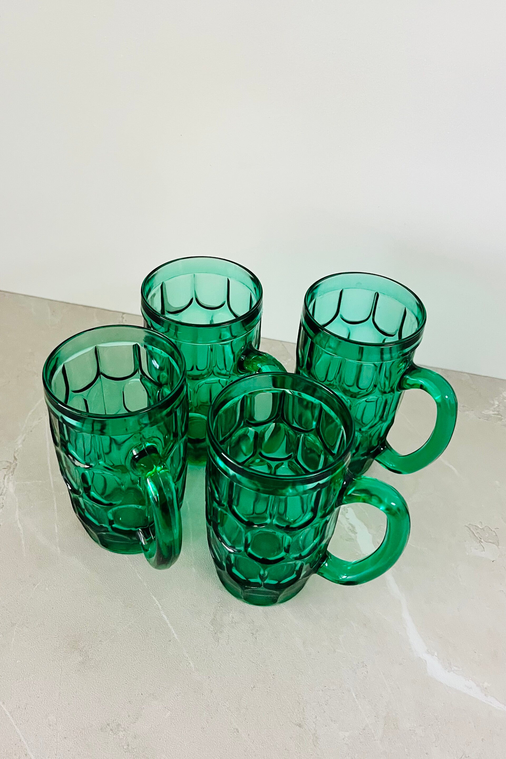 4 vintage French green glass beer mugs from the 70s. They are in perfect condition.