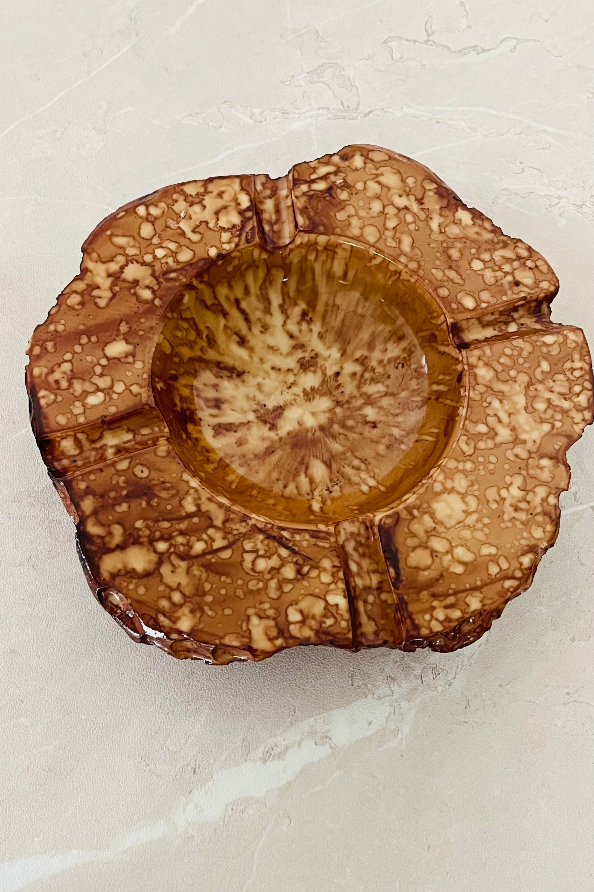 L'objet est lourd et imposant et fera son effet sur une table de salon, imitant l'albâtre.