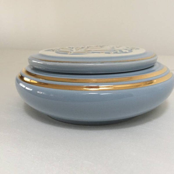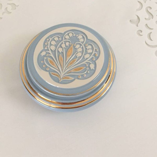 Ancienne boîte ou bonbonnière en porcelaine Muguet tout en relief des Années 50.